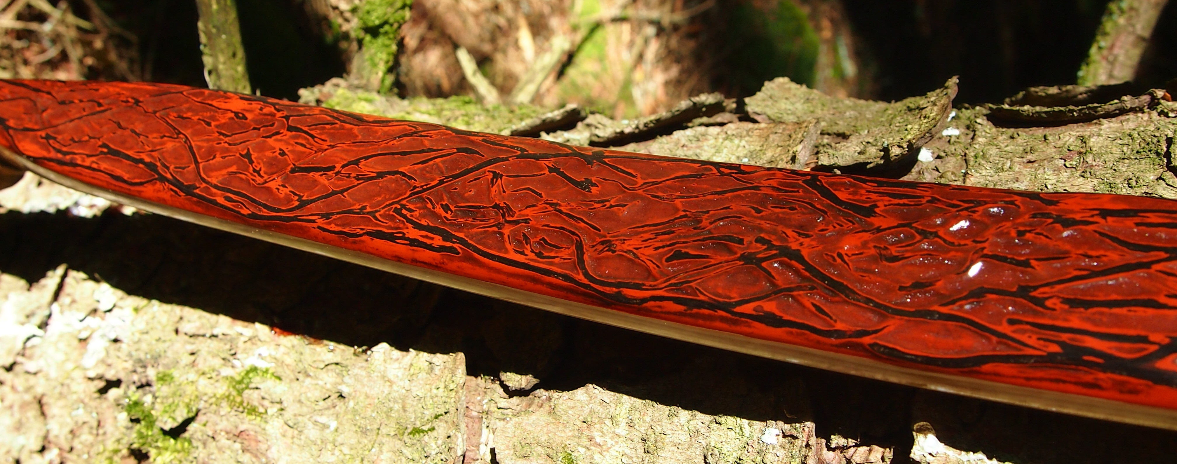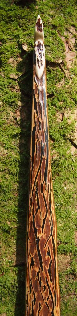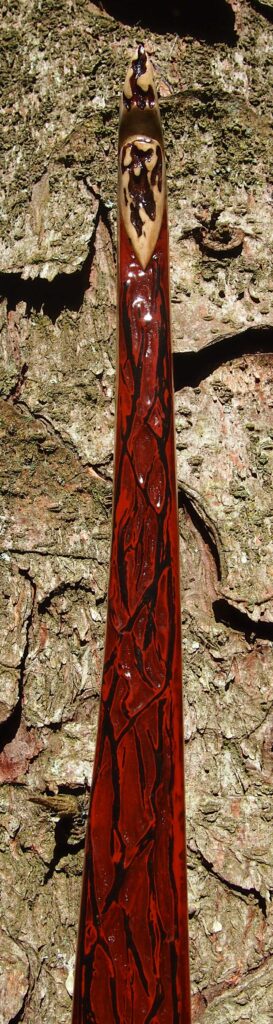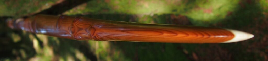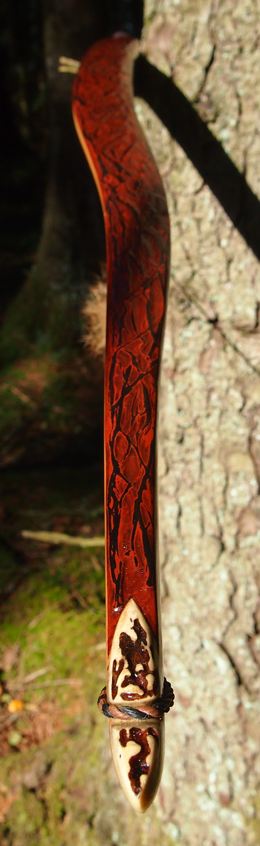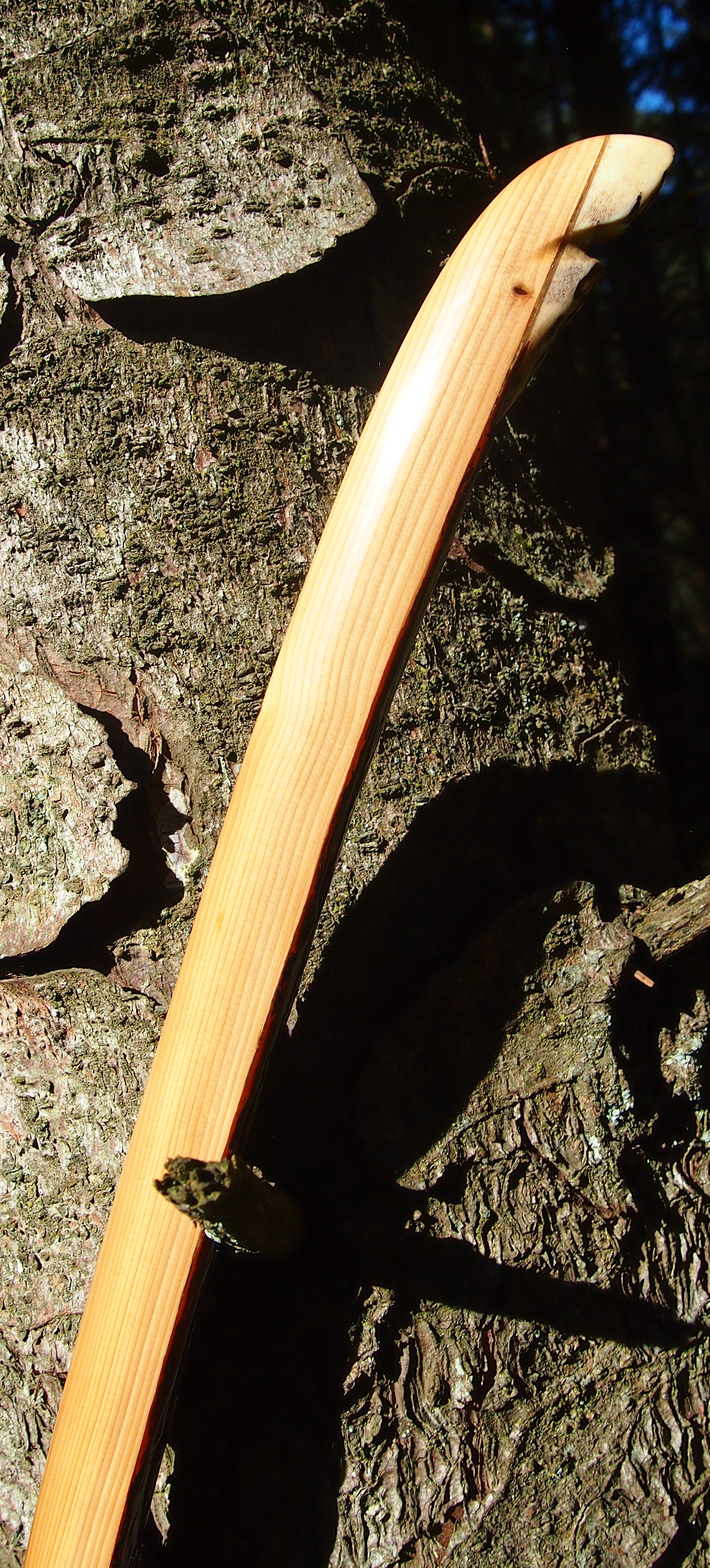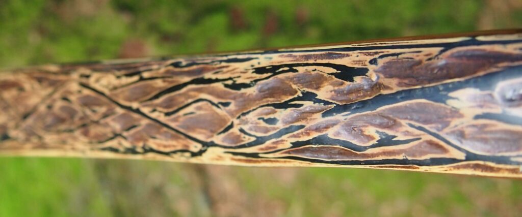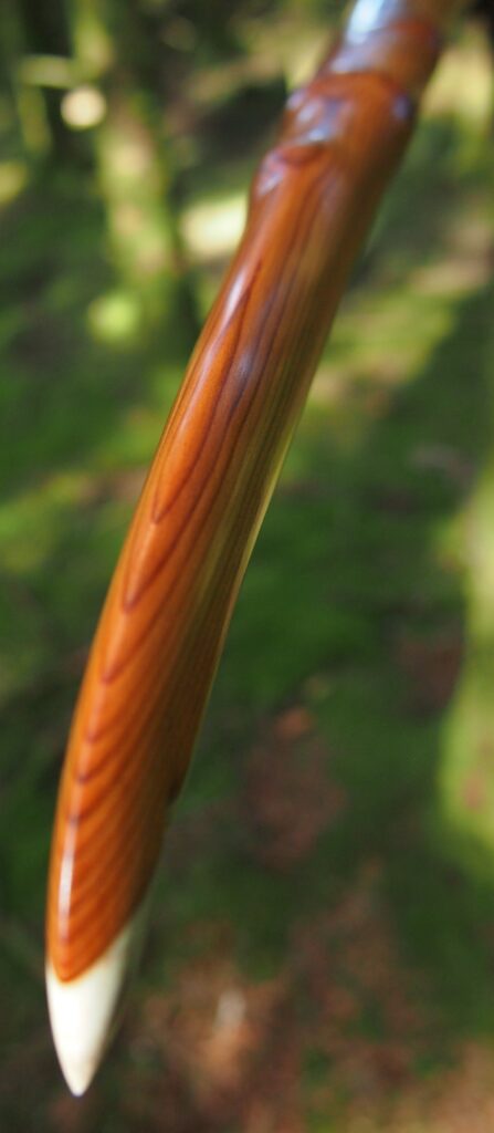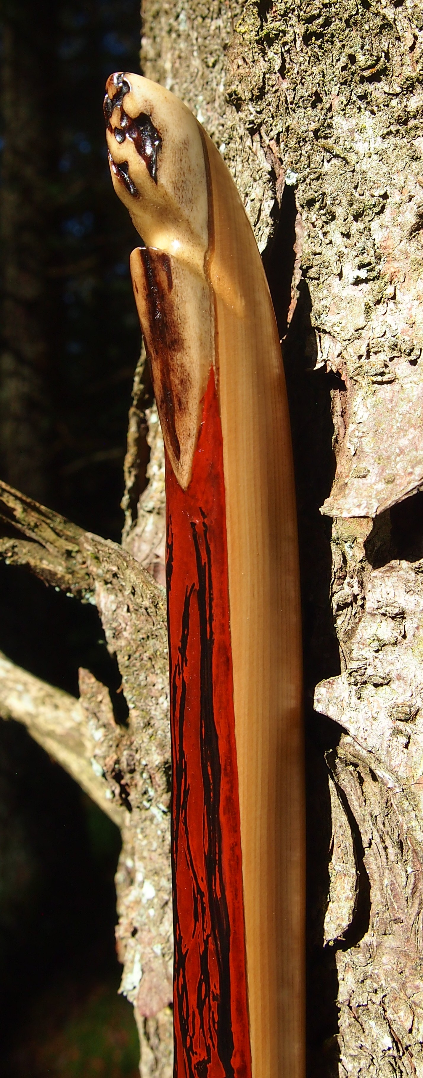 After refining the tips to minimise mass I fitted Wild English red deer antler tip overlays. I’ve also decorated the sinew backing in the exact same way as I’d described in my previous blog post which you can find here: Snakey Sinew backed Yew R&D Flatty (Zombie Killer) Bow No: 25 – Southmoor Bows