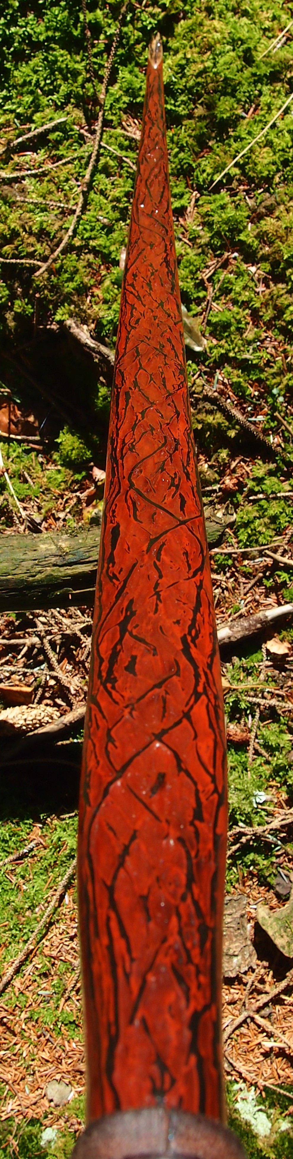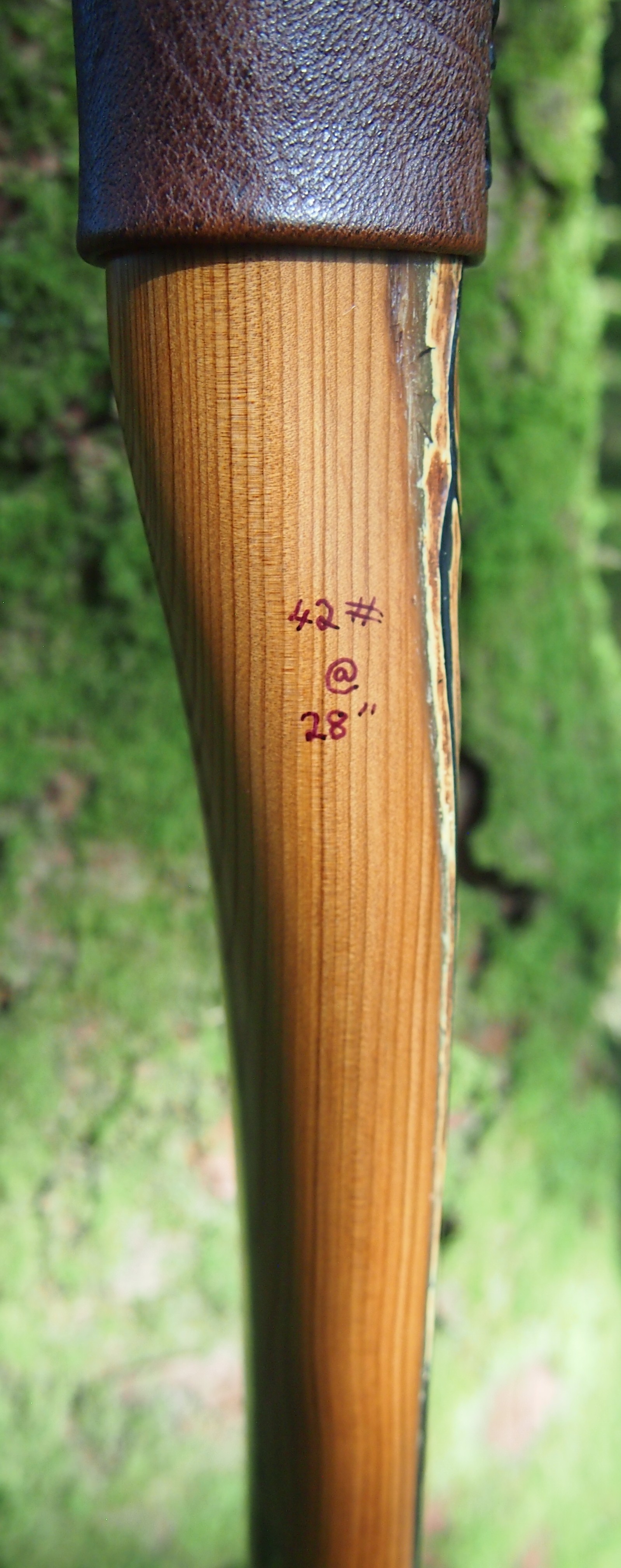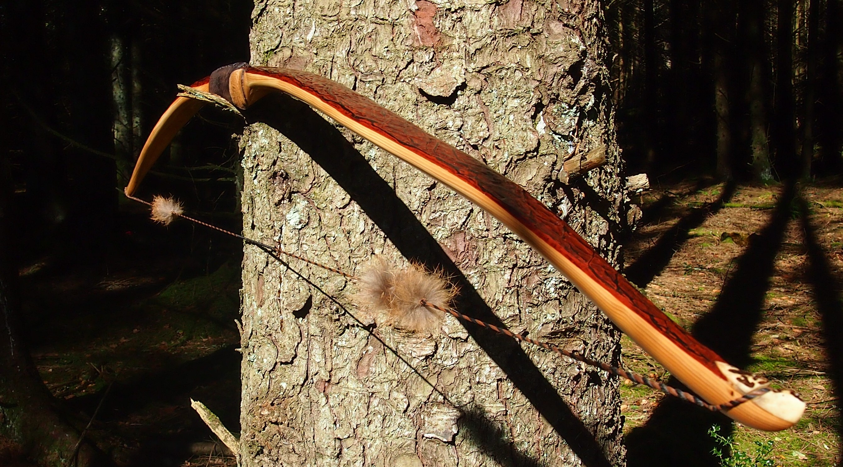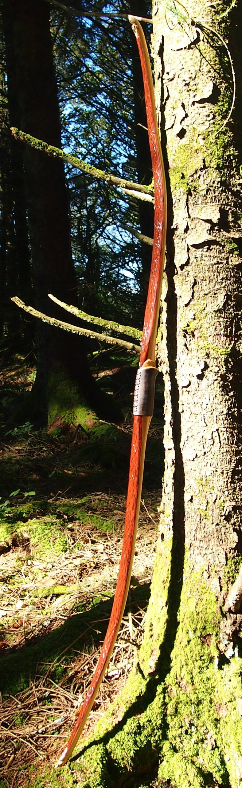 Once fully cured and cleaned up she tillered out to 45lbs at 28”. After tweaks, shooting in and sanding she finished up at 42Lb at 28”. She’s been a cracker to shoot and I had great fun putting a couple hundred arrows through her on my stump shooting forays. She’s sending 400 grain arrows over the chrono at 145fps at my draw length of 26” so I’m guessing at 28” she’ll be pushing 150+fps. She doesn’t stack and she doesn’t kick so she’s a real pleasure to shoot.